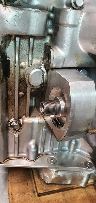 First thing I need to check is the thickness of the flange on the crank that the alternator drive gear bolts to. It takes 6 bolts. Also- what size are the bolts? They look like they could be 10mm? This is all important because I'll be machining a boss to bolt onto this flange and those six bolts will take the loading of a custom flywheel.